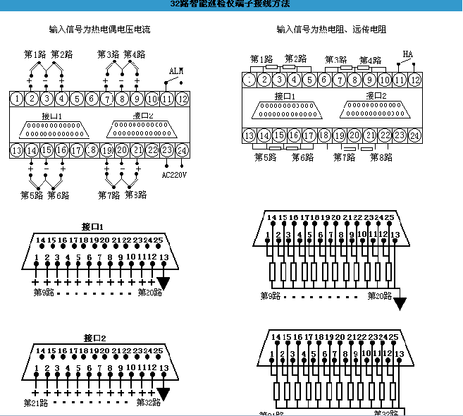 警報(bào)輸出: ⑴1-64通道統(tǒng)一上下限警報(bào),繼電器輸出觸點(diǎn)容量 AC220V/3A
